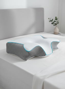 Elevated head design for open airways; dual-height memory foam adapts to side, back, and stomach sleepers; breathable, washable cover for easy care.
